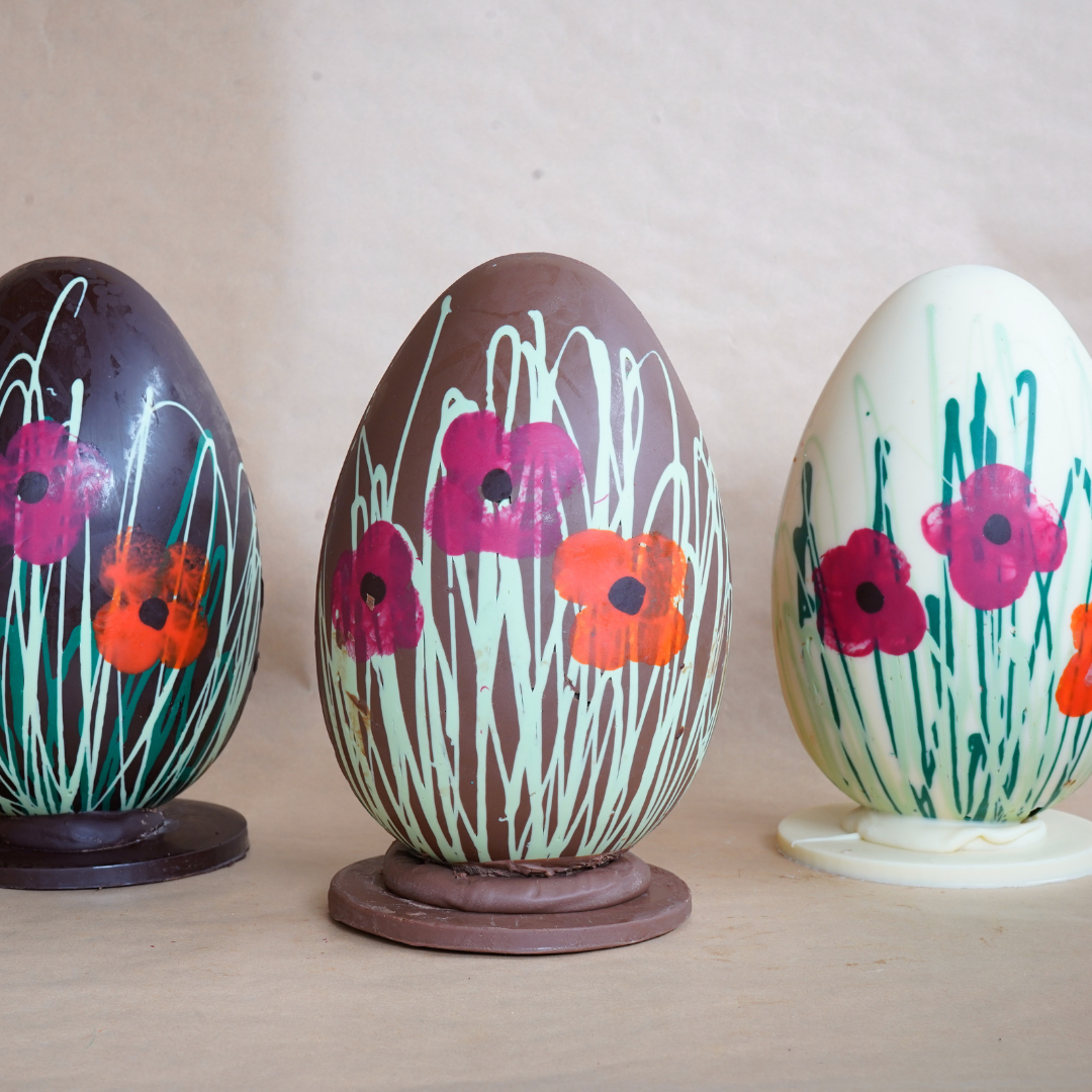 Cocoa mass, cocoa butter, reduced fat cocoa powder, sugar, soy lecithin, natural vanilla, glycerol, colours e102, e133, e171, e124, e559, e172, e127.